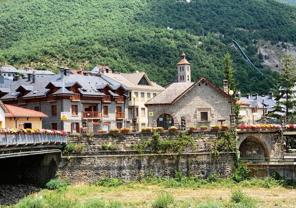 Bielsa es mi debilidad, no te lo voy a negar, es el pueblo alpino por excelencia en esta zona. A los pies del Parque Nacional de Monte Perdido, es la base perfecta para ir al Cañón de Añisclo o al Valle de Pineta. Confieso que no esperaba mucho más que un lugar de paso… y acabé mirando los carteles de las inmobiliarias. Es un pueblo que te abraza con el verde de sus montañas.