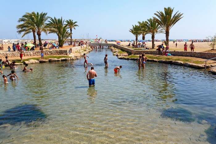 Comarruga es el lugar donde el agua dulce y la salada deciden darse la mano de la forma más curiosa posible. Lo que más me llamó la atención es el Riuet, un manantial de agua termal que brota en pleno centro y corre por un canal hasta la misma playa, con gente descansando en sus aguas medicinales a todas horas.